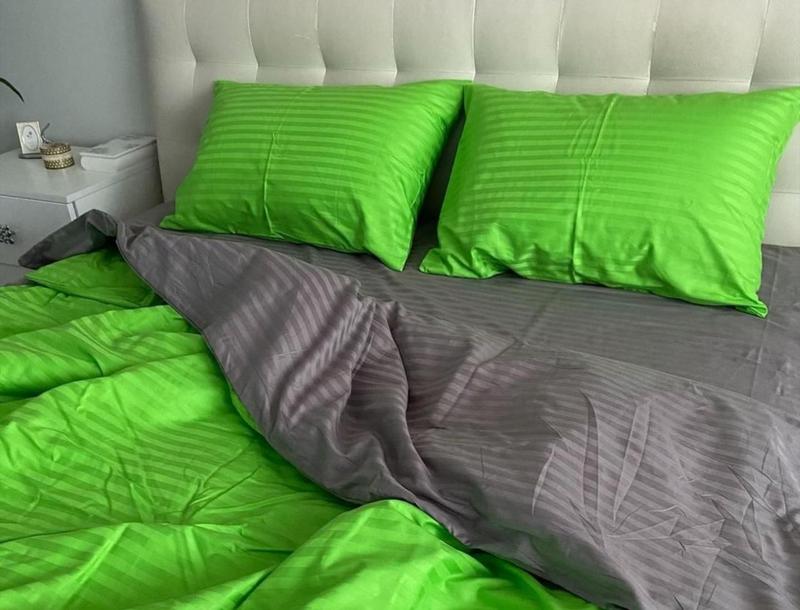 Семейный комплект постельного белья " салатовый, зеленый, серый ", страйп сатин "виталина...