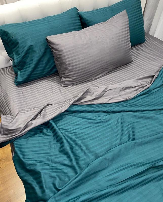 Полуторный комплект постельного белья " изумрудный, серый, зеленый ", страйп сатин "виталина"