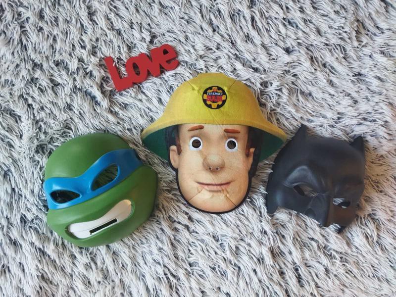 Цена указана за 1 шт, в наличии 3 шт (те что на фото). Маски в хорошем состоянии, сзади на резинке, резинка на липучке. Черепашка-ниндзя, как я понимаю Леонардо, и Бэтмен пластиковые, Пожарный с фетра. Могу прислать дополнительно фото.