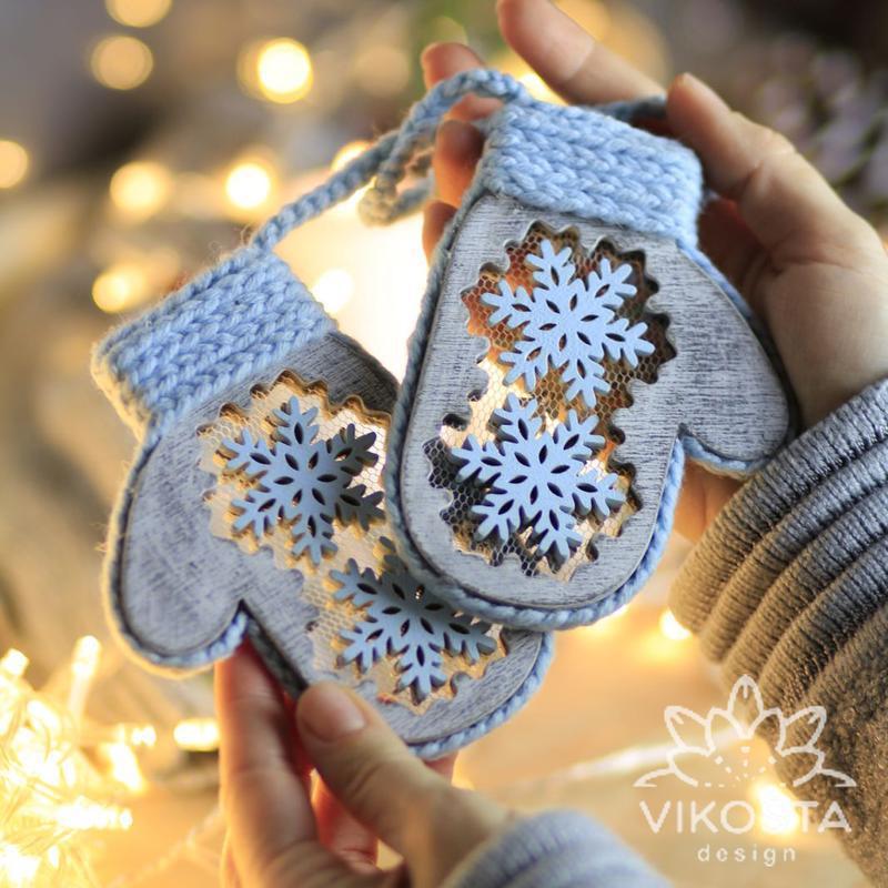Игрушка на елку "варежки", деревянная елочная игрушка, подвес на елку