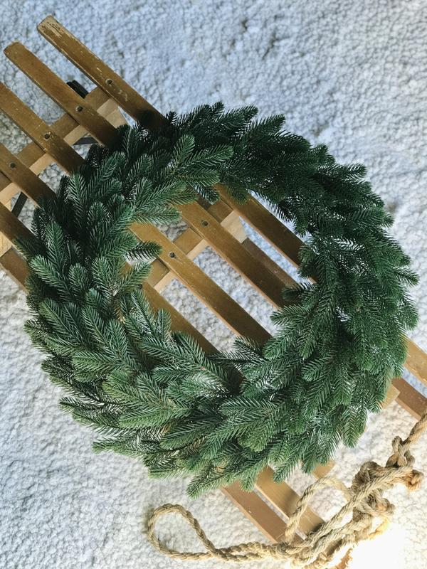 Новогодний декоративный венок с диаметром 50 см изготовлен из 100% литой хвои,