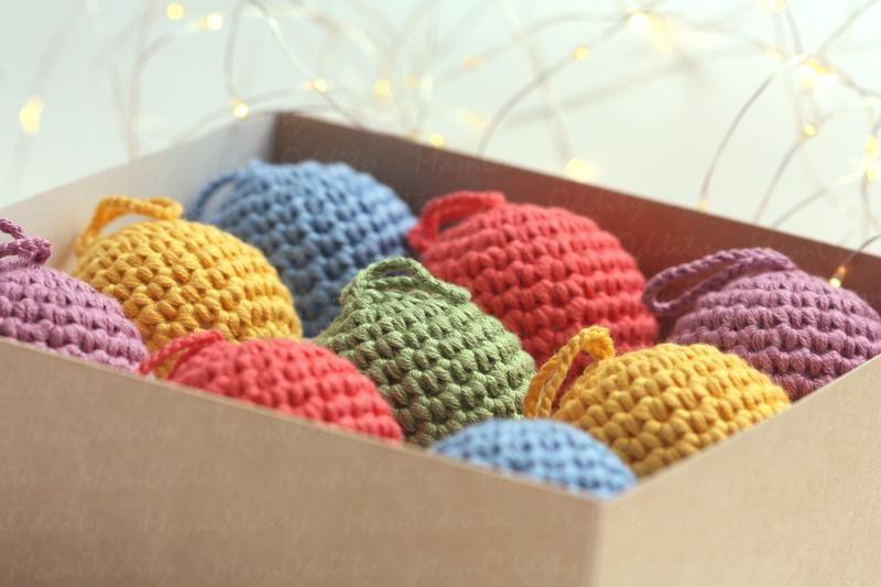 Набор разноцветных уютных елочных шаров: 2 красных, 2 желтых, 2 синих, 2 фиолетовых, 1 зеленый