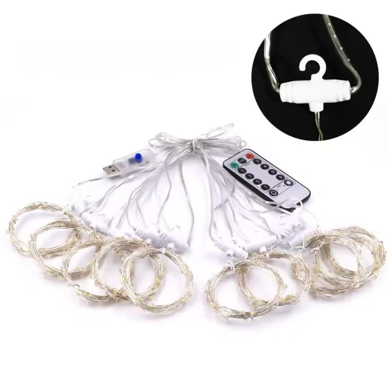 Гирлянда шторка состоит из 10 медных вертикальных проводов, которые размещены
