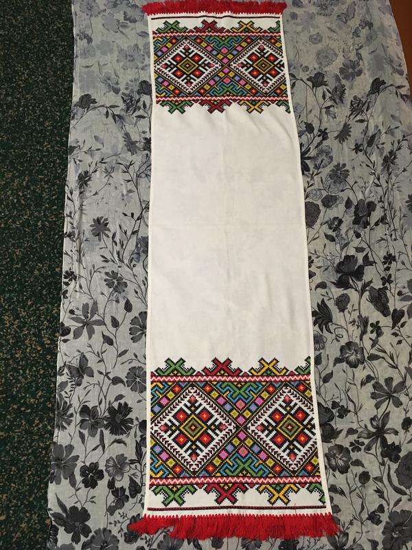 Яркое полотенце, длина 152 см, ширина 42 см, высота вышивки 34 см