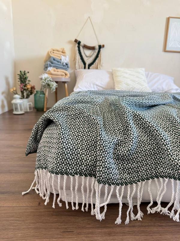 В наличии красивый хопковый плед с узором клетка и кисточками Bilgium. В составе 70% шерсти, теплый, мягкий, не кусючий.
