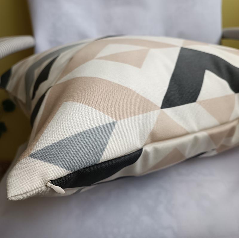 Декоративна наволочка 35*35 бежево сіро чорні ромби на молочному фоні з плотної турецької декоративної тканини