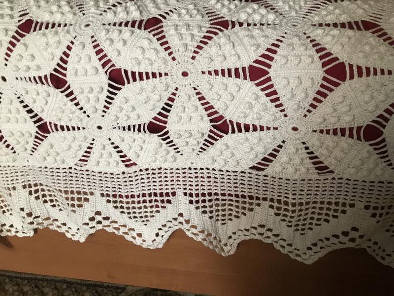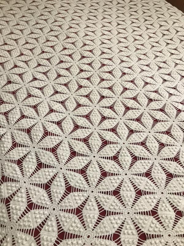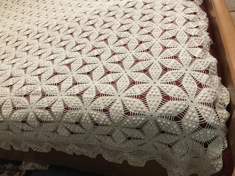 Покривало нове ручної роботи з ірису ДМС сніжинка , кремового кольору, з кружевом по краю кроваті роз: шир. 220см, довж. 210 см.