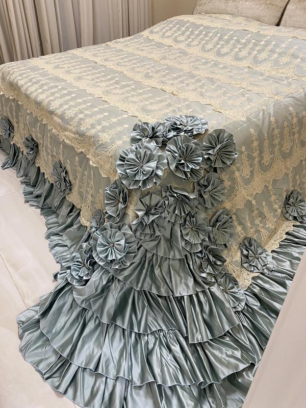 Покрывало мятного цвета, на синтапоне. Мятного цвета с аппликацией из кружевая. На кровать king size.