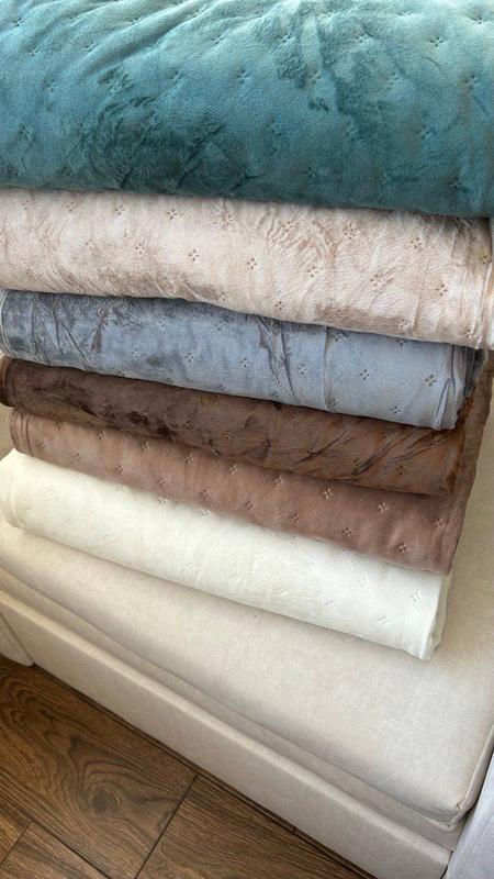 Ніжна✨бархатистая ткань покрывала невероятно приятная на ощупь. Практичное в уходе, не растягивается и не теряет цвет.