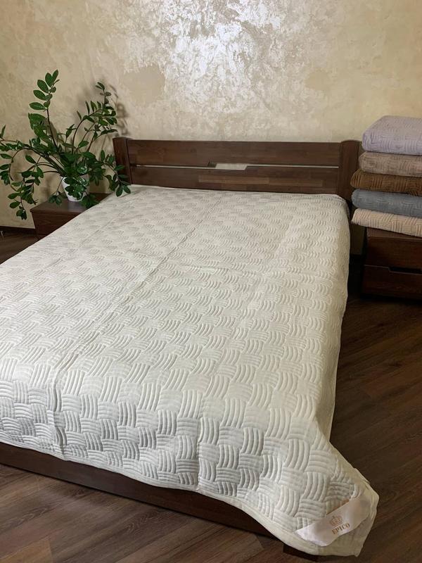 Велюровое стеганое покрывало «Увязка» ✅ Размер: 220/240 см (+- 5 см ) ✅ Упаковка: сумка с ручками Верх покривала - велюр, зворотня сторона - х/б. Внутри идет прослушивания синтепона. Покрывало выполнено из велюра, мягкой и бархатистой ткани. Велюр выходит путем переплетения пяти нитей, четыре их попарно образуют верхнюю и нижнюю основания, а пятка - образует ворс. С одной стороны характерен, прочностью и долговечностью, мягкостью и практичностью, с другой - привлекательным внешним видом. Отличительной чертой покрывала является невероятно мягкая бархатистая поверхность, которая подарит вам незабываемые тактильные ощущения. Оттенки: - молочный