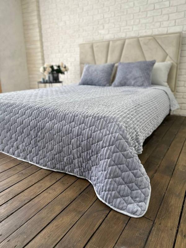 Стеганое покрывало с подушками в комплекте Невероятно изысканное покрывало, дополнит спальню и станет настоящим украшением дома Покрывало двухстороннее, одна сторона -мягкая микрофибра, другая сторона - ткань сатин. Внутри покрывала - синтепон. Подушки тоже двухсторонние( чехол не снимается) Подушки 40x60 см - 2 шт 🏷️Размер: 220x240 🏷️Цена - 1560 грн М.295