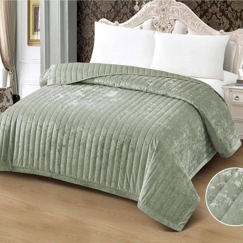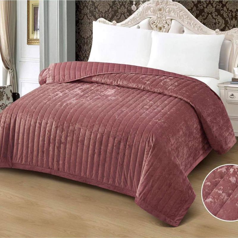 Велюр – материал, имеющий ворсистую, бархатистую на ощупь поверхность, достаточно плотный и очень мягкий. В состав входят натуральные и синтетические волокна – 50% хлопок, 50% полиэстер. Синтетические нити повышают прочность и долговечность ткани. Натуральные волокна в составе ткани обеспечивают воздухопроницаемость и гипоаллергенность, не вызывают кожных раздражений. В процессе эксплуатации покрывало из велюра не садится, мало мнется и не растягивается.