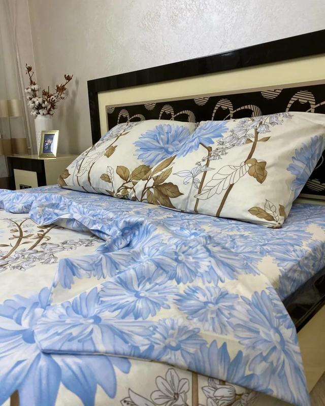 Полуторний комплект: 740грн простирадло 145/220 підковдра 150/220 наволочки 2шт 70/70 Двуспальний комплект: 820 грн простирадло 200/220 підковдра 180/220 наволочки 2шт 70/70 Євро комплект: 860 грн простирадло 200/220 підковдра 200/220 наволочки 2шт 70/70 Сімейний комплект:1075грн простирадло 200/220 підковдра 2шт 150/220 наволочки 2шт 70/70 Матеріал: пакистанська бязь голд Склад: 92% бавовна 8% еластан