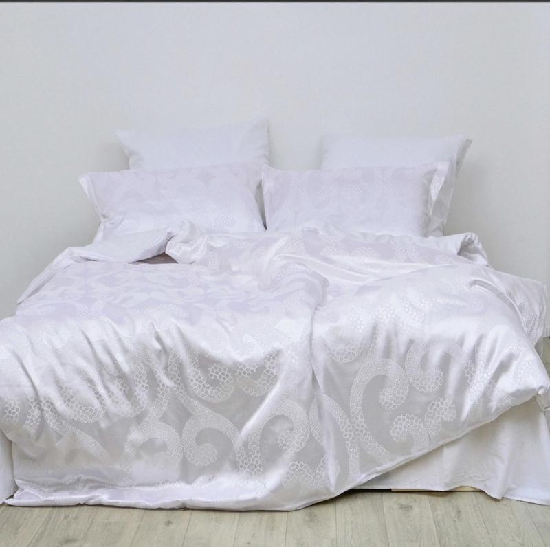 Склад: 100% бавовна Тканина: Жаккард-Сатин Постільна білизна, виключно, в євро-розмірі з комплектацією*: Наволочка: 70 х 70 см - 2шт; 50 х 70 см - 2шт; Підковдра: 200 х 220 см - 1шт Простирадло: 240 х 260 см - 1шт