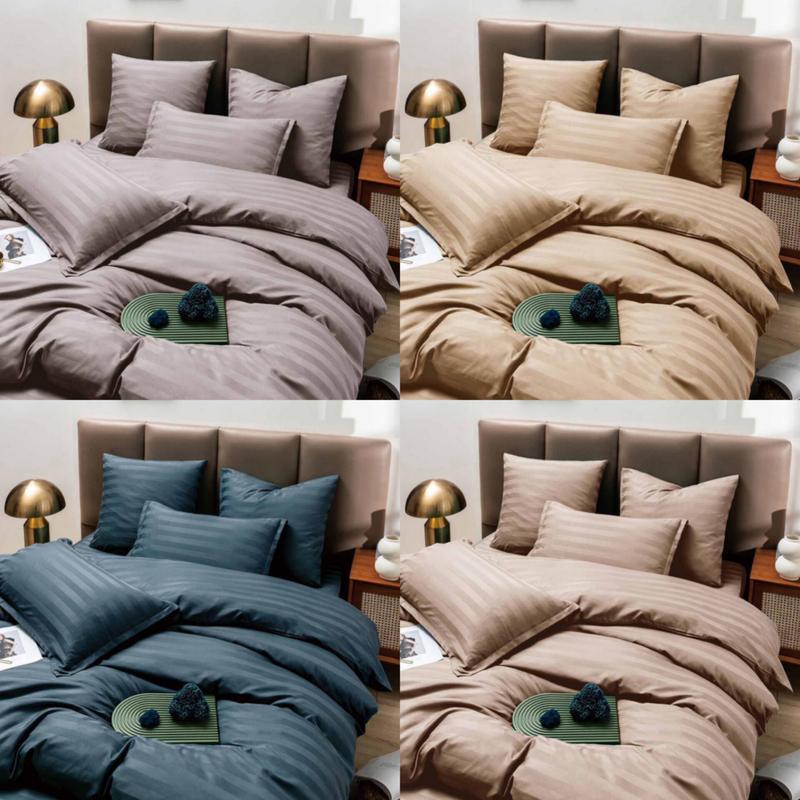▪️Сатин-страйп считается классическим эталоном прочности и долговечности. Его изготавливают из 100% хлопка с помощью косого переплетения нитей, что придает ткани однородную структуру и блеск, причем без каких-либо синтетических примесей и добавок.