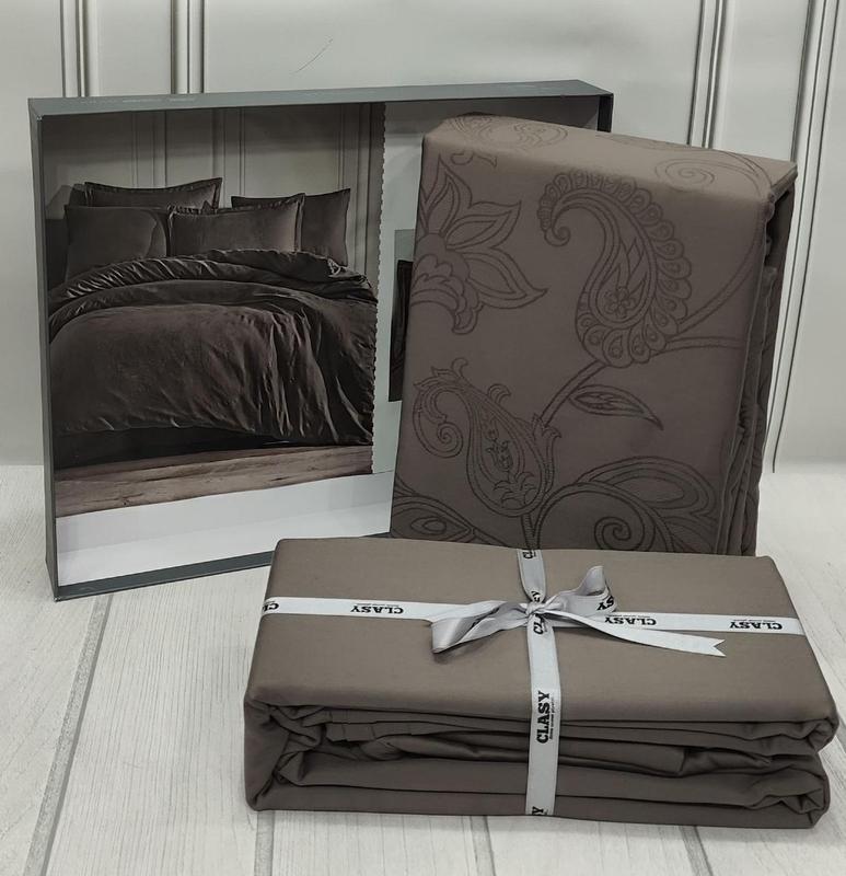 Постельное белье сатин жаккард евро размер Clasy Sadra Постельное белье Clasy сатин - жаккард - это воплощение элегантности и изыска в вашей спальне. Ощутите роскошь и комфорт каждую ночь. Характеристики: - Состав: сатин - жаккард люкс, который обеспечивает мягкость и долговечность. - Размеры: - Пододеяльник 200x220 см. - Простынь 240x260 см. - Наволочки: 2 шт. 50x70 см + 2 шт. 70x70 см - Упаковка: фирменная коробка, идеальна для подарка. Этот комплект не только придаст вашей спальне изысканный вид, но и подарит вам ночной отдых в окружении роскоши и комфорта. Он подходит для повседневного использования или в качестве уникального подарка на свадьбу или другое торжество. Позвольте себе роскошь и качество с постельным бельем Clasy.