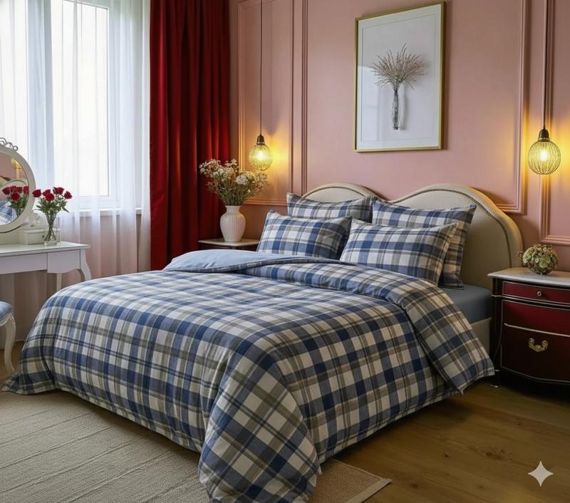 Постельный комплект фланель акварель клетка супер люкс синий