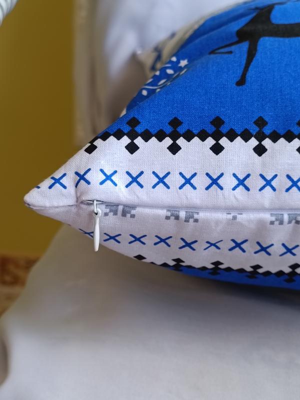 Новогодняя наволочка 40*40 см с оленями в серо синих цветах из ткани хлопок