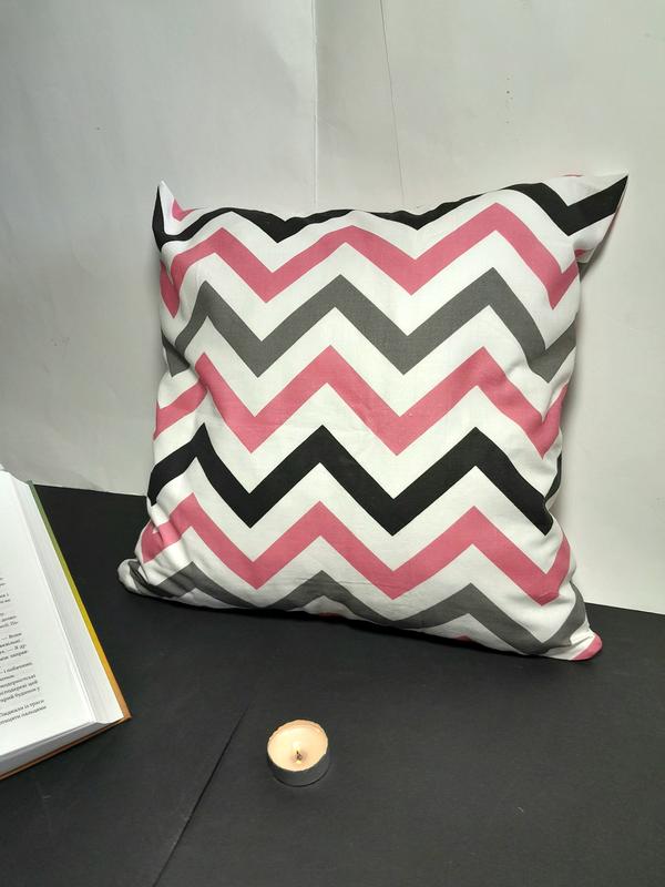 Наволочка с розовыми/черными/серыми зигзагами украсит любой интерьер: как в холодных, так и теплых цветах.