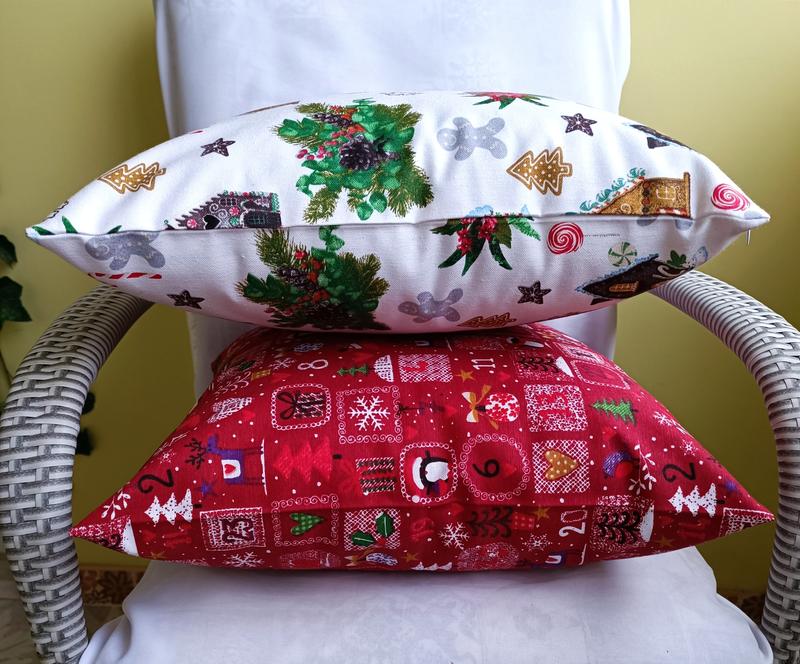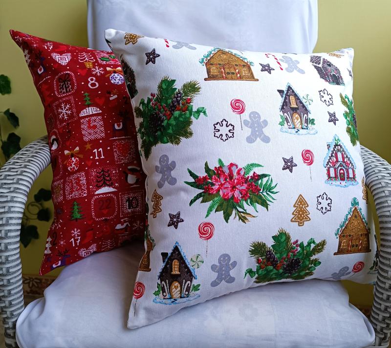 Набор новогодних наволочек 40*40 см сказочный календарь и пряничные домики для декора интерьера