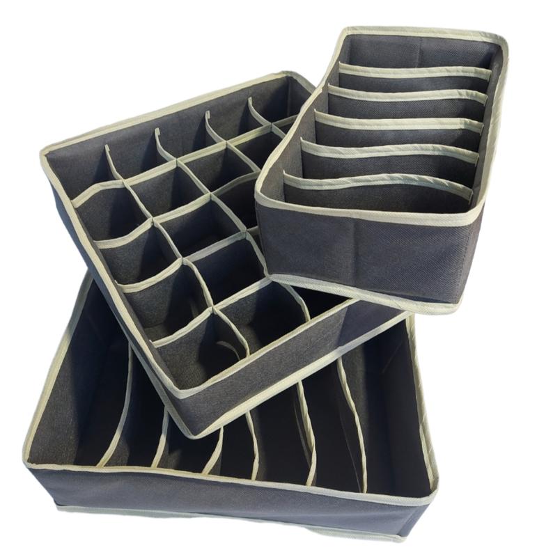 Наши органайзеры помогут навести порядок с вещами где бы они ни были - в ящике, шкафу, на стуле, подоконнике. Органайзеры беспрекословно добавят удобства при переезде или путешествии. В сложенном виде набор органайзеров занимает мало места.