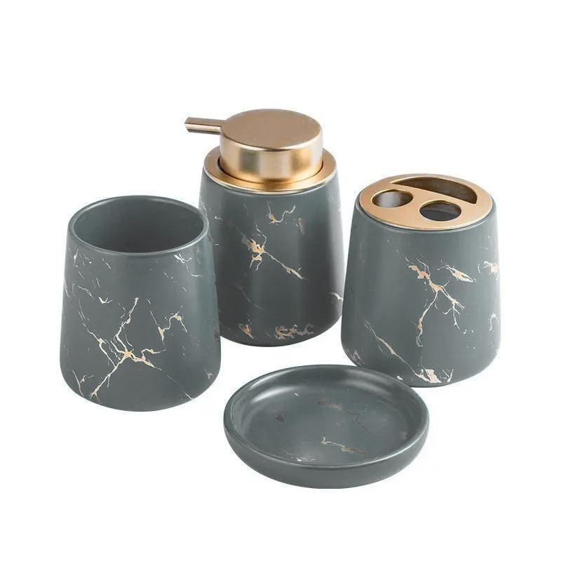 керамики. Керамический набор в ванную комнату состоит из 4 предметов: дозатор