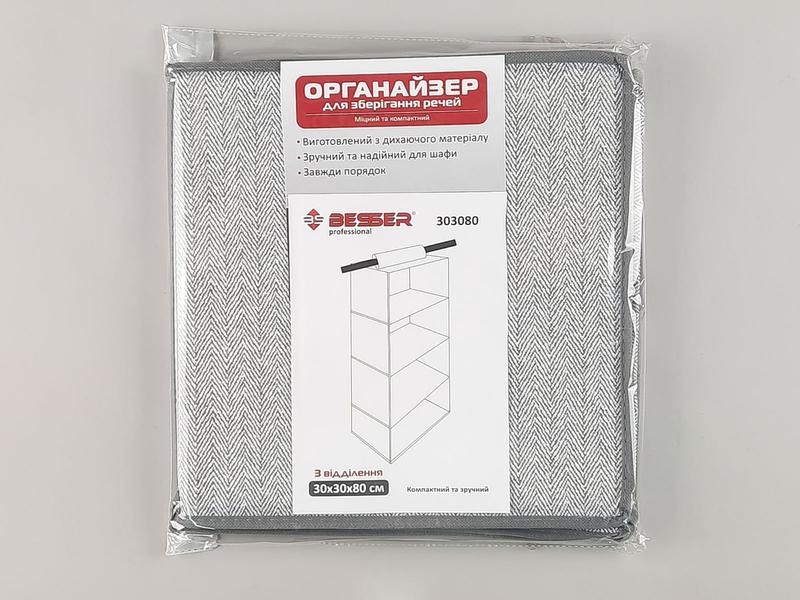 Подвесной органайзер для хранения серого цвета, размер 30*30*80 см, на 4