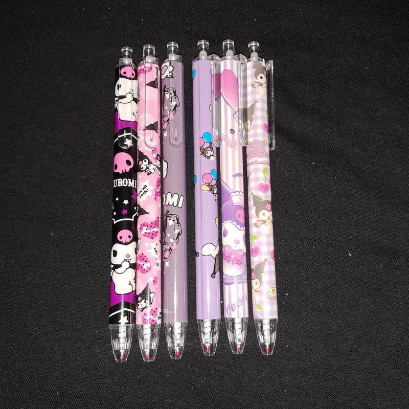 Набор из 6 гелевых ручек с Куроме, ручки пишут черным цветом - Kuromi Sanrio