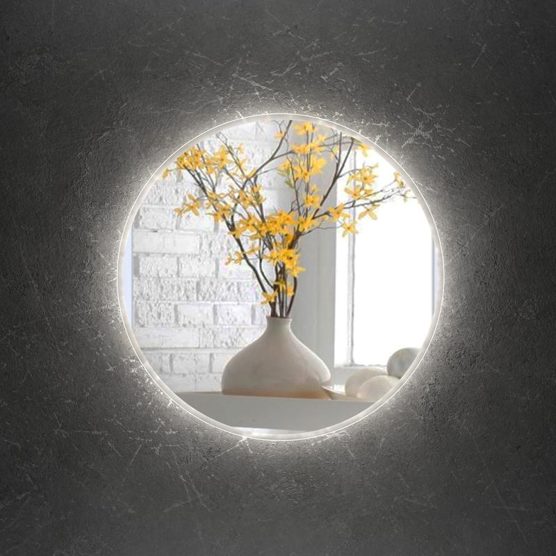 Круглое зеркало с матовым краем и Led подсветкой 750 мм настенное для
