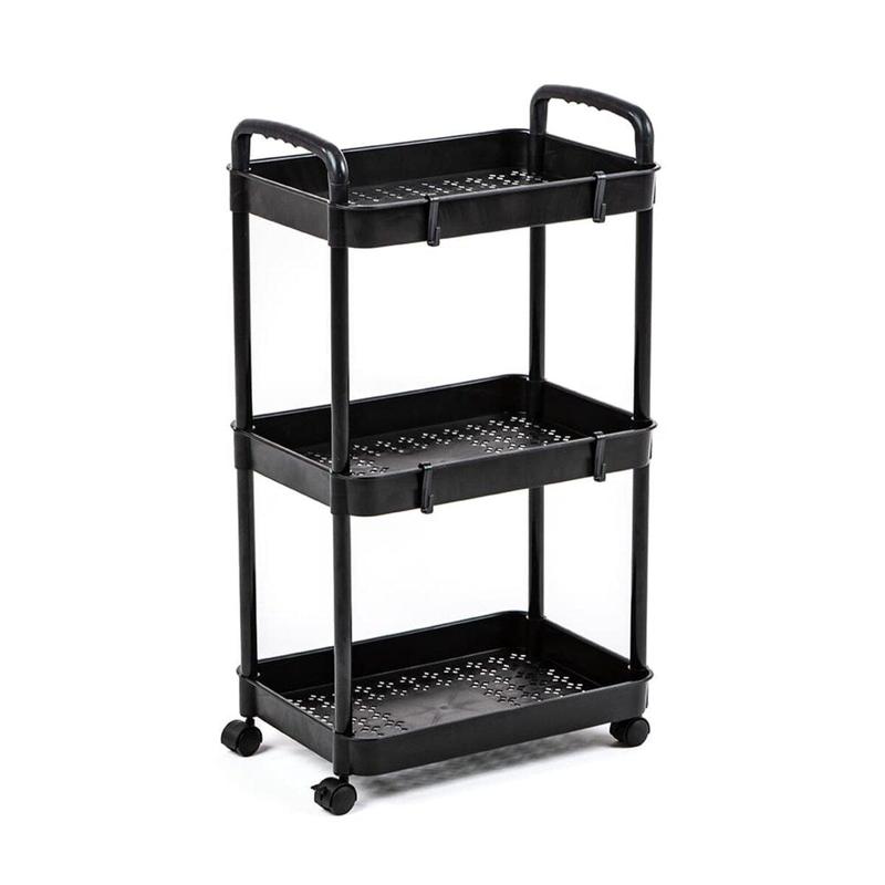 Этажерка мобильная трехъярусная универсальная пластиковая черная 41*25*72см sw-00002107