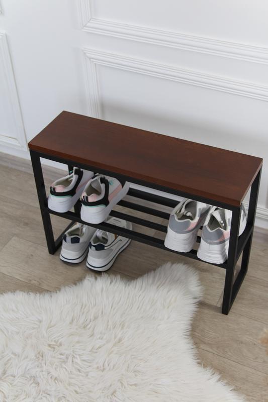 Банкетка в прихожую из дерева и металла, компактное хранение обуви 70х20х46 см