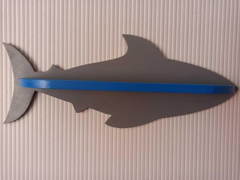 Детская полочка для книг и игрушек Акула Оригинальная полочка для детской комнаты. Изготовлена из фанеры и массива дерева. Покрытие - акриловые краски на водной основе. Возможно изготовление в любом цвете на ваш выбор.