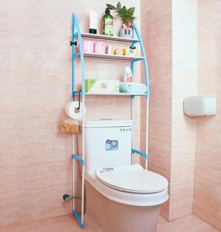 Компактная туалетная стойка с полками устанавливается над унитазом и совсем не будет мешать, полки висят над бачком.
