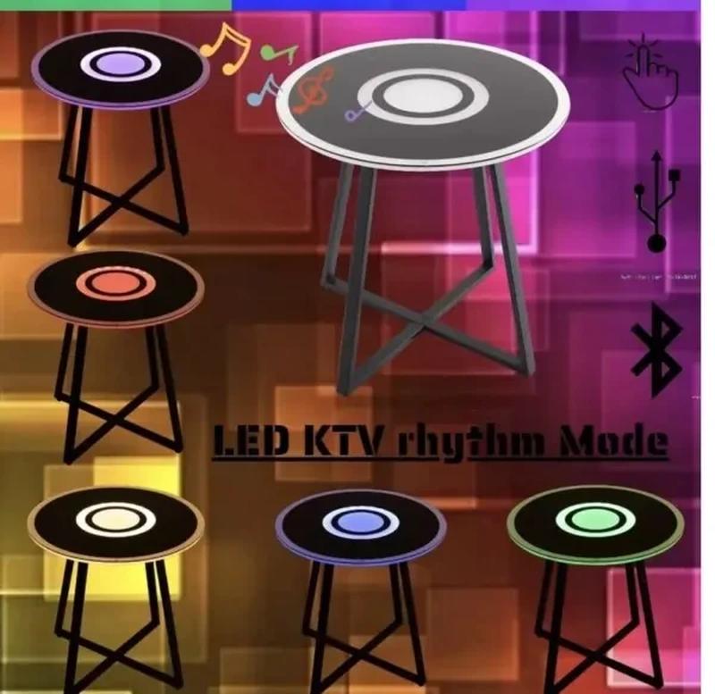 Круглый стеклянный музыкальный журнальный столик с подсветкой – это изысканное