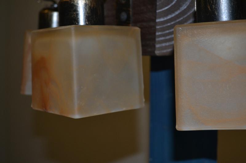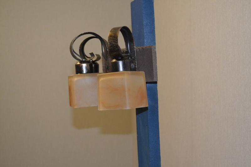 - Плафоны бра стеклянные, каркас -- металлический.