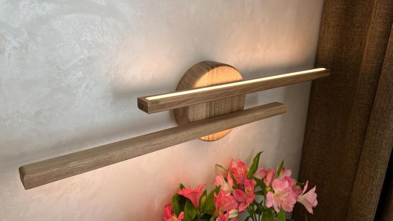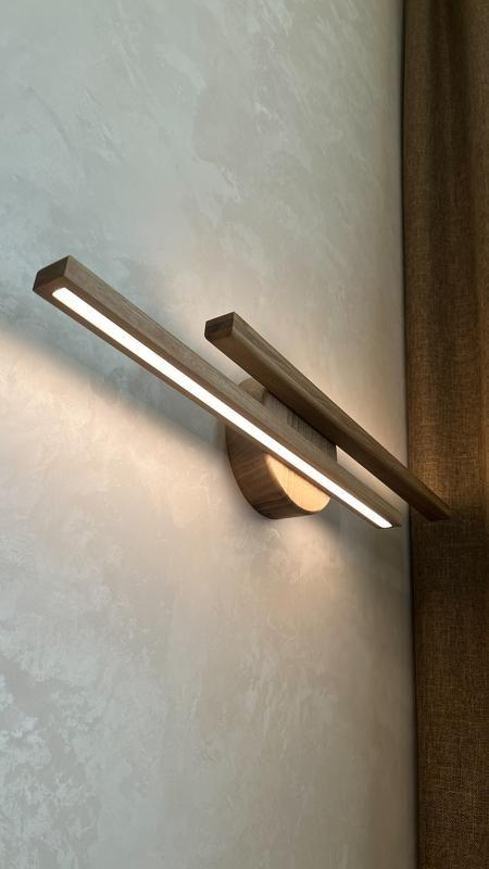 Этот стильный и оригинальный светильник мы сделали из массива дерева – европейского ореха. Эта уникальная бра полностью изготовлена вручную. Мы покрывали древесину только натуральным маслом с воском.