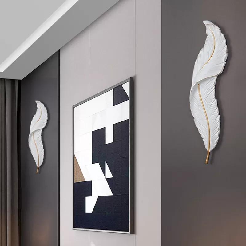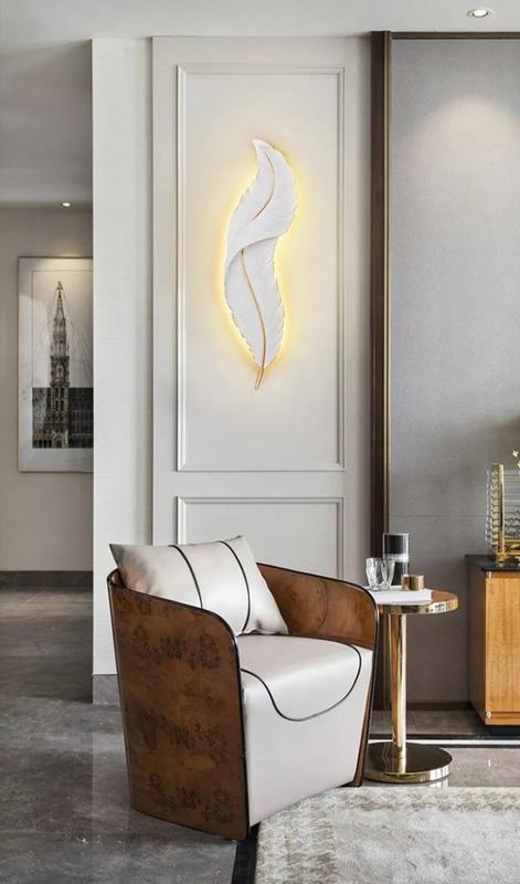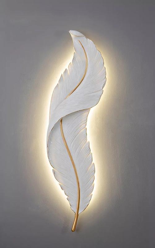 Настенное бра в виде перья, корпус сделан из гипса, встроенные светодиоды,