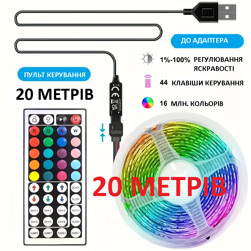 🌈 светодиодная led лента 20 метров с пультом ду | яркое rgb освещение для дома, вечеринок...