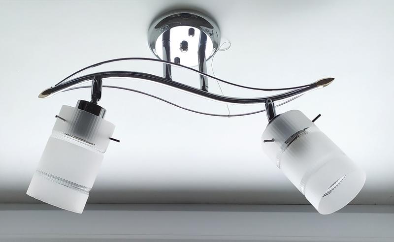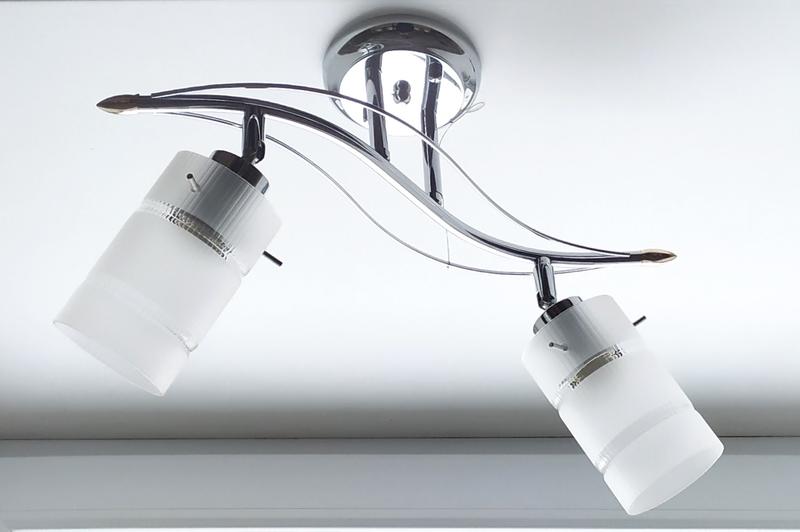 Люстра с поворотными плафонами на 2 лампыМатериал корпуса - металлМатериал плафона - стеклоЦвет основания - сереброТип цоколя - E27---Пересылаю Укрпочтой или Новой почтой