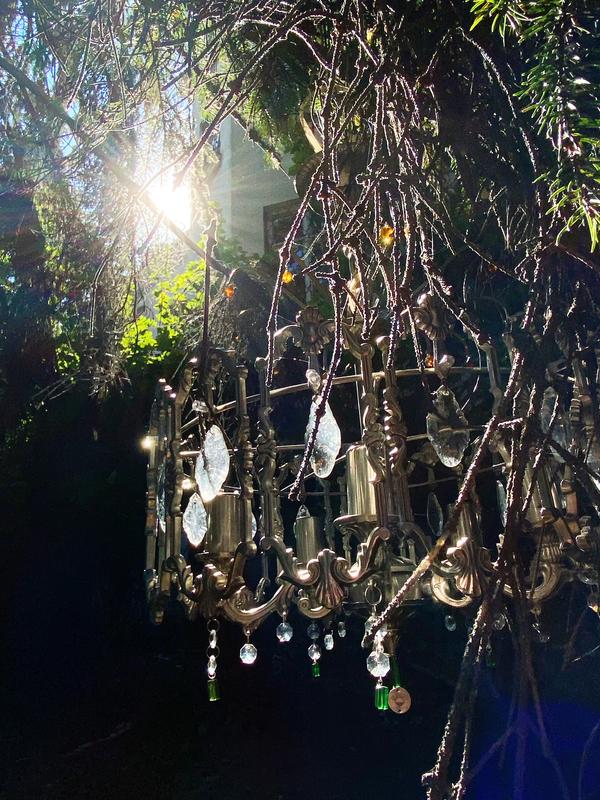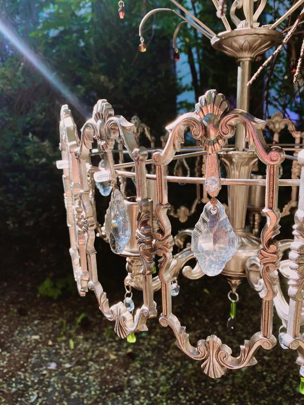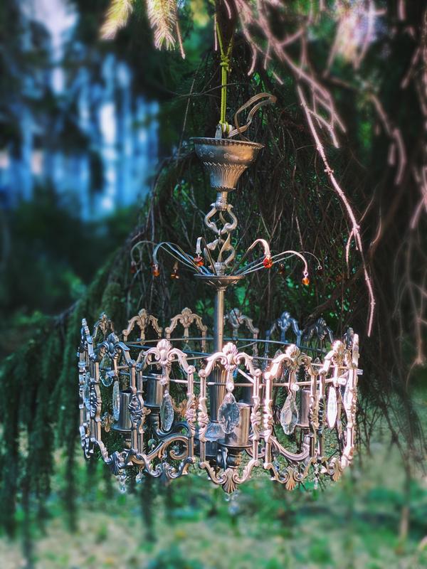 Сталинский ампир. Я реставрировала ее и добавила цветного стекла. Хрусталь впитывает свет — настоящий. Камушки янтаря 🥰
