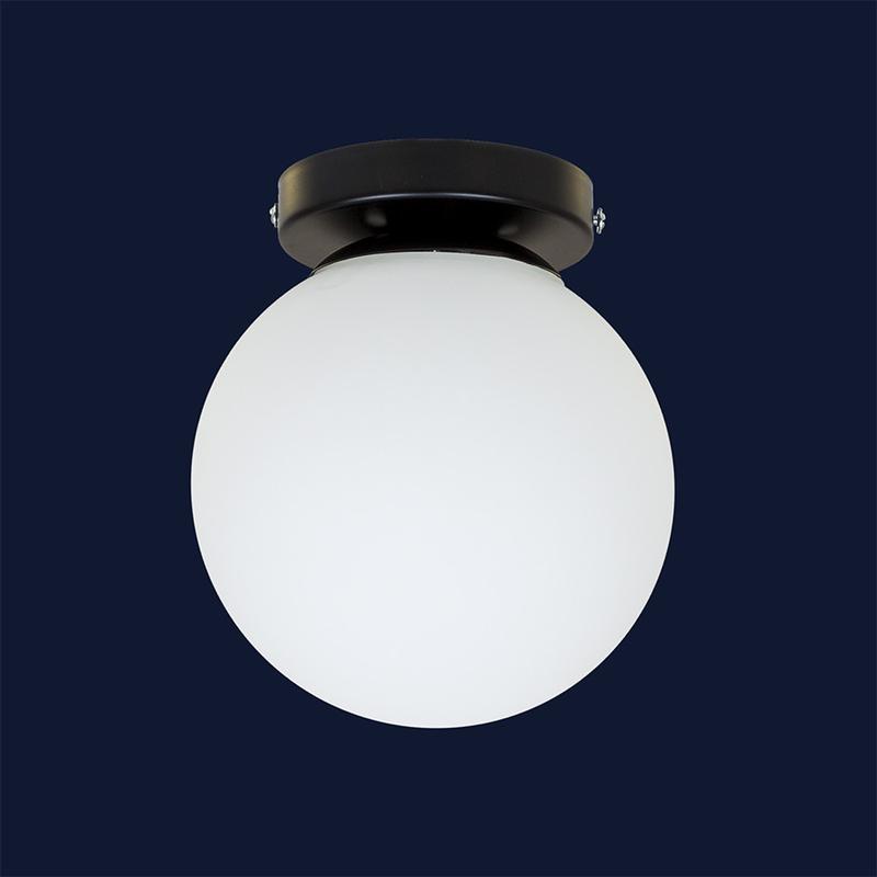 Материал - металл + стекло Цвет - черный + белый Количество плафонов - 1 Размер - 150 мм Тип крепления - потолочный круг Материал крепления - металл Цвет крепления - черный Источник света - 1 лампа Е27 Максимальная мощность лампочки - 40 W Возможность использования лампы LED, светодиодная, энергосберегающая.