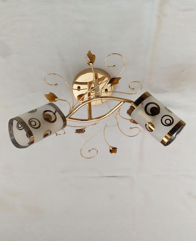 Люстра на 2 плафонаМатериал корпуса - металлМатериал плафонов - стеклоТип патронов - E27Размеры - 43х35х24 см---Отправка Укрпочтой или Новой почтой.