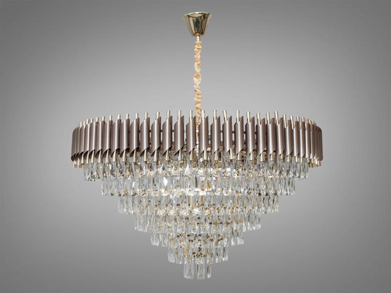 Современная хрустальная люстра на 18 ламп коричневый+золото