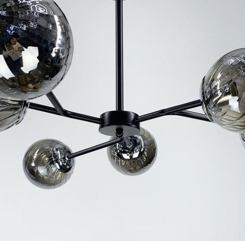 Мінімалістичний стельовий світильник на 6 або 10 плафонів в корпусі металчорного кольору Плафони доступні у двох варіантах : прозорий або графіт