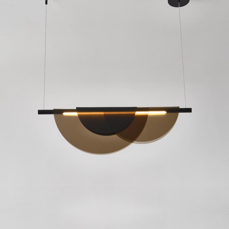 Удлиненная Led люстра в черном каркасе с пластинами серого цвета. Минимальная