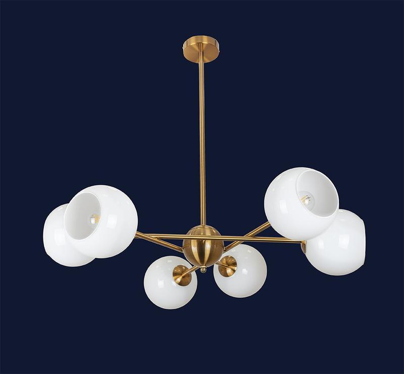 Люстра зі скляними плафонами 761J2014-6 BRZ+WH