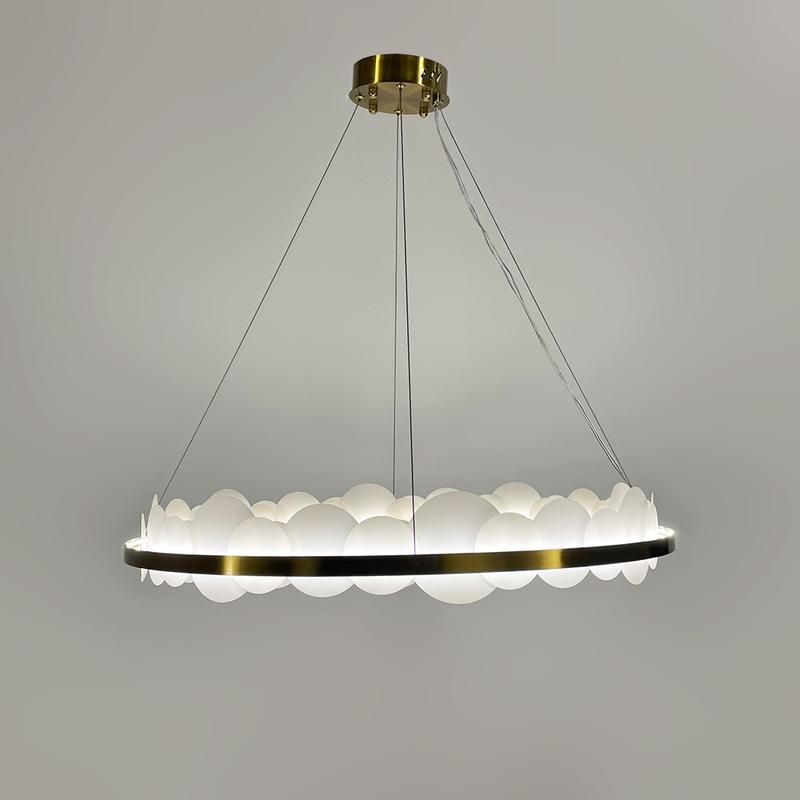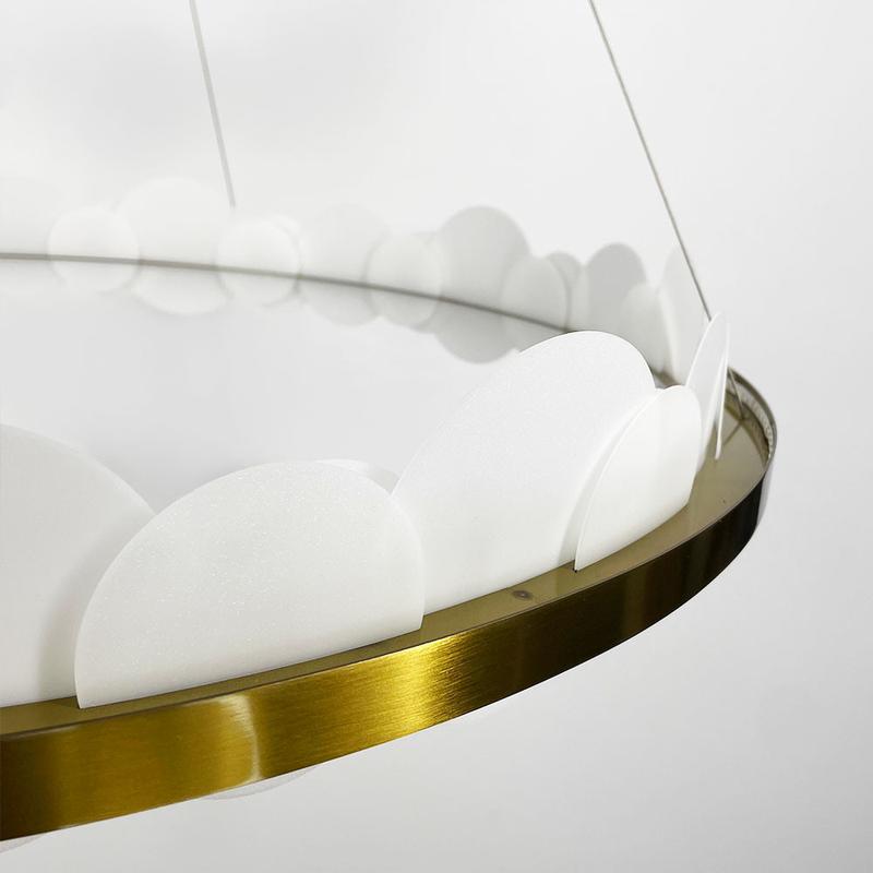 Кільцева підвісна люстра у латунному корпусі має унікальний дизайн із