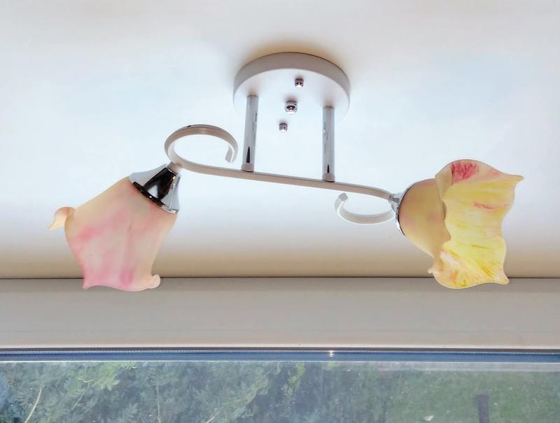 Люстра на 2 плафонаМатериал корпуса - стальМатериал плафонов - стеклоПокрытие корпуса - эмальЦвет основания - белыйТип цоколя - E27---Отправка Укрпочтой или Новой почтой.