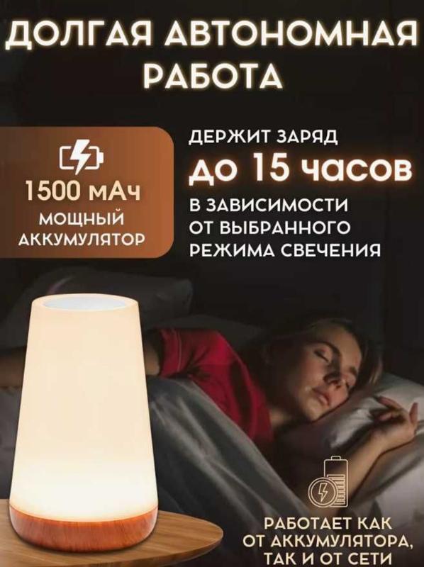 Этот ночник станет незаменимым помощником в создании уюта и комфорта в вашей спальне или детской комнате. Ночник светодиодный, имеет 13 цветов подсветки, что позволяет выбрать любой оттенок, в зависимости от вашего настроения. Кроме того, он имеет 5 режимов яркости свечения, от холодного до теплого, что позволяет настроить освещение под любые потребности. Светильник ночник создает мягкий свет, который идеально подходит для использования в качестве кровати для сна. С его помощью ваш ребенок сможет спокойно засыпать и чувствовать себя защищенным в темноте. Он также оснащен функцией таймера на 1, 2, 4 или 6 часов, что позволяет установить нужное время работы ночника и не беспокоиться о его отключении. Ночник детский для сна имеет сенсорное управление - включить, выключить ночник и выбрать наиболее подходящий цвет можно легким прикосновением. Дополнительным удобством является наличие дистанционного управления, которое позволяет легко контролировать световые режимы и настройки ночника без необходимости подходить к нему каждый раз. Ночник беспроводной работает от аккумулятора и от сети, что делает его удобным в использовании. Есть небольшой нюанс, при перевозке слегка смялись коробки, со всем остальным все отлично