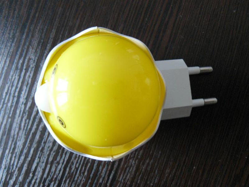 Ночник с датчиком освещения Цыплёнок. Стандартная вилка в розетку. Лампа не вынимается из розетки. При наступлении темноты включается свет, а днём от автоматически отключается. Размер: 7/5,5 смМощность: 0,5 ВтТип батареи: питание от сети 220 V